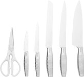 چاقوی سرآشپز ۲۰ سانتیمتری، چاقوی نان ۲۰ سانتیمتری، چاقوی ژامبون ۲۰ سانتیمتری، چاقوی کاربردی ۱۳ سانتیمتری، چاقوی خردکن ۹ سانتیمتری، و یک قیچی |