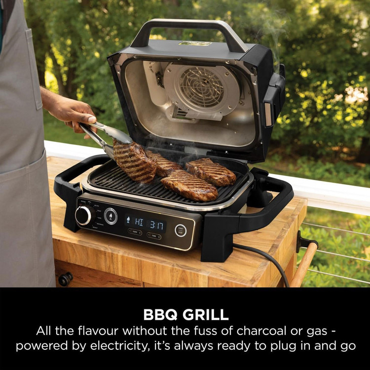گریل باربیکیو برقی نینجا مدل OG701 با برق کار می کند و دارای 7 برنامه گریل کردن، دودی کردن، سرخ کردن، کباب کردن، پختن، گرم کردن و آبگیری است. این دستگاه 2400 واتی به امکانات پیشرفته ای از جمله تکنولوژی Woodfire مجهز شده و شما باید در مخزن مخصوص، تکه های چوب را به منظور ایجاد آتش و گریل کردن مواد غذایی قرار دهید. با این تکنولوژی جدید طعم دودی و کبابی خوشمزه ای ایجاد می شود که از خوردن آن لذت زیادی خواهید برد.