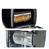 یکی از بهترین تولیدات شرکت کنوود انگلستان سرخ کن چندکاره مدل HFP90 اشاره کرد. این سرخ کن کنوود دارای توان مصرفی 1700 وات میباشد که در نوع خود عالی به نظر میرسد. این مدل دارای قابلیت پخت بدون روغن میباشد که میتوان یک سیب زمینی را تا 80 درصد چربی کمتر سرخ میکند که البته لازم به ذکر است که اصلا طعم و مزه مواد غذایی تغییری نمیکند. این دستگاه مثل نمونههای دیگری نیازی به گرم شدن ندارد، فقط کافیست مثلا برای سرخ کردن سیب زمینی حدود 14 و 15 دقیقه منتظر باشید تا کار دستگاه تمام شود. در سرخ کن چند کاره کنوود مدل HFP90 به دلیل اینکه از هوای داغ به جای روغن برای سرخ کردن استفاده میشود اولا بوی بد غذاها را میگیرد و همچنین باعث میشود تا بخار روغن خیلی کمی ایجاد شود. سرخ کن HFP90 کنوود کاربردهای دیگری نیز دارد از جمله میتوان از آن به عنوان یک فر کوچک نیز استفاده کرد. این مدل سرخ کن درب شیشهای دارد که این امکان را به شما میدهد که هنگام پخت مواد غذایی، داخل آن را تماشا کنید، که این ویژگی منحصر به فرد بشمار میآید. گنجایش این دستگاه 11 لیتر است و قابلیت ویژهای که این سرخ کن دارد این است که بدون روغن بهترین غذا را برای شما آماده میکند ولی میتوان برای طلایی شدن رنگ مواد غذایی از یک قاشق روغن استفاده کنید. غذاهایی که در این دستگاه پخته میشود بسیار سالم و خوش طعم است و برای کسانی که به رژیم غذایی خود اهمیت میدهند و غذای سالم مصرف میکنند بسیار مناسب است. این دستگاه دارای ظاهر و طراحی زیبایی است که به آشپزخانه شما جلوه میدهد.