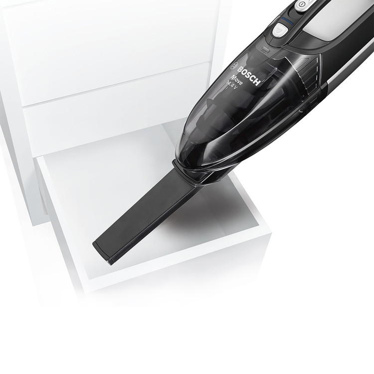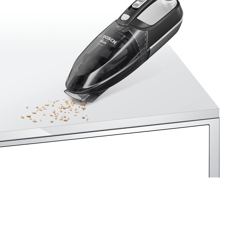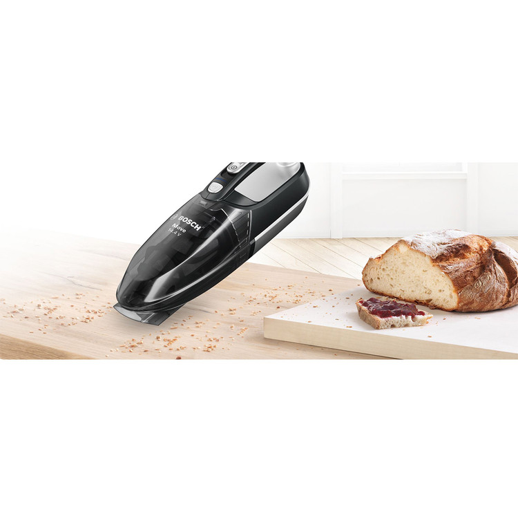 جارو شارژی بوش BOSCH مدل BHN14090 وسیله ای با طراحی زیبا و بدون سیم بوده که کار با دستگاه را آسان می نماید. جارو شارژی های دستی بوش وسیله ای کاربردی برای تمیز نمودن منزل ، محیط کار و حتی داخل ماشین میباشند. طراحی بدون سیم این جارو شارژی موجب استفاده آسان میشود. باتری 14.4 ولتی دستگاه از نوع NI-MH بوده که در مدت 12 الی 16 ساعت به صورت کامل شارژ میشود و میتوان 12 دقیقه مستمر از جارو استفاده نمود. با روشن شدن چراغ نشانگر روی بدنه از زمان شارژ دستگاه مطلع میشوید. مخزن دستگاه ظرفیت مناسبی داشته و به راحتی و تنها با فشردن یک کلید از بدنه اصلی جداسازی میشود. فیلتر بهداشتی تعبیه شده درون مخزن نیز از خروج گرد و غبار به محیط جلوگیری می نماید. یک سری باریک برای گردگیری گوشه ها و نقاط دور از دسترس همراه با دستگاه ارائه شده است.