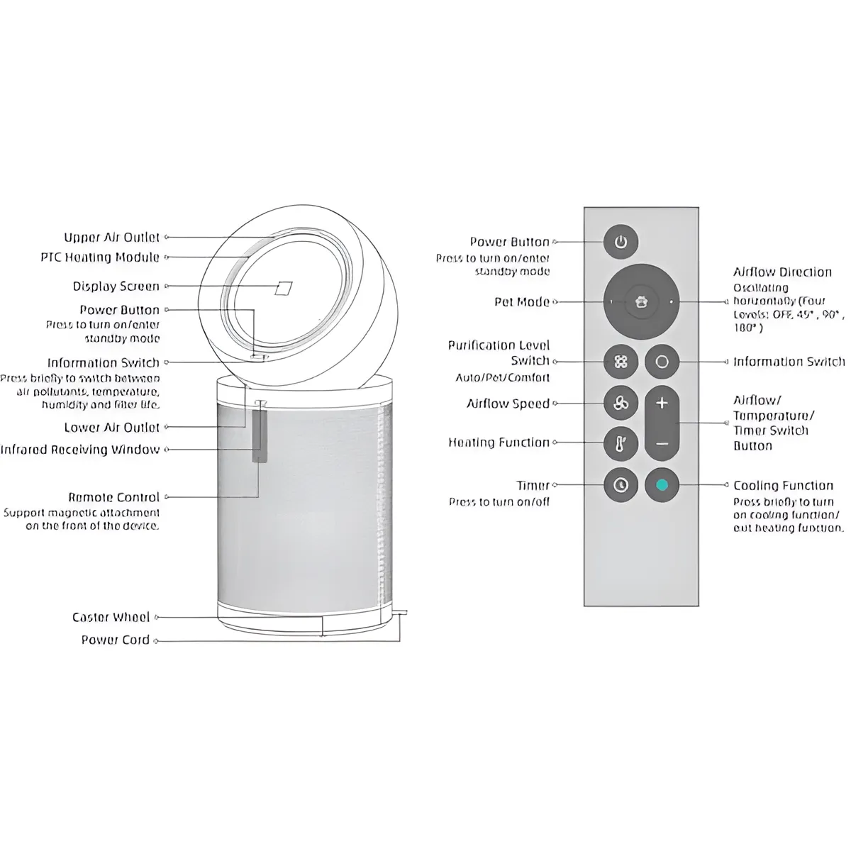 شما میتوانید دریم PM20 را هم با ریموت کنترل و هم از طریق گوشی همراه کنترل کنید. ریموت امکان کنترل سریع و آسان را فراهم میکند و میتوانید بدون نزدیک شدن به دستگاه حالتها، سرعت فن یا درجه حرارت را تغییر دهید. علاوه بر آن، اپلیکیشن مخصوص نیز این اجازه را میدهد که از هر کجا و در هر زمان دستگاه را مدیریت کنید و حتی زمانی که در خانه نیستید کیفیت هوا را بررسی کنید. این قابلیت برای افرادی که برنامهریزی منظم دارند یا زمان زیادی خارج از منزل هستند بسیار مفید است.